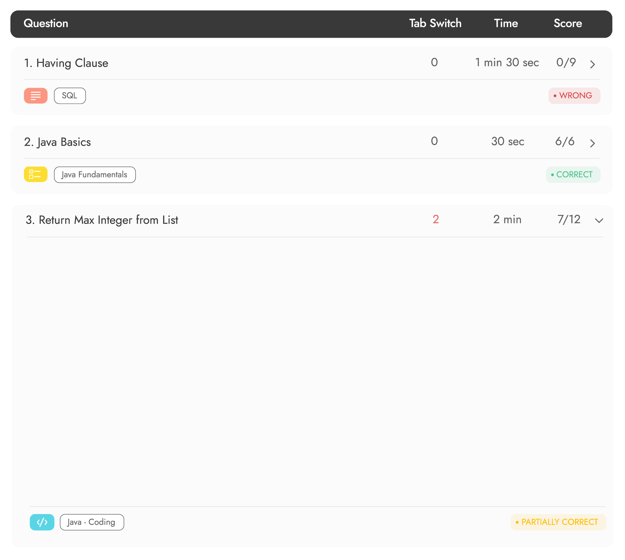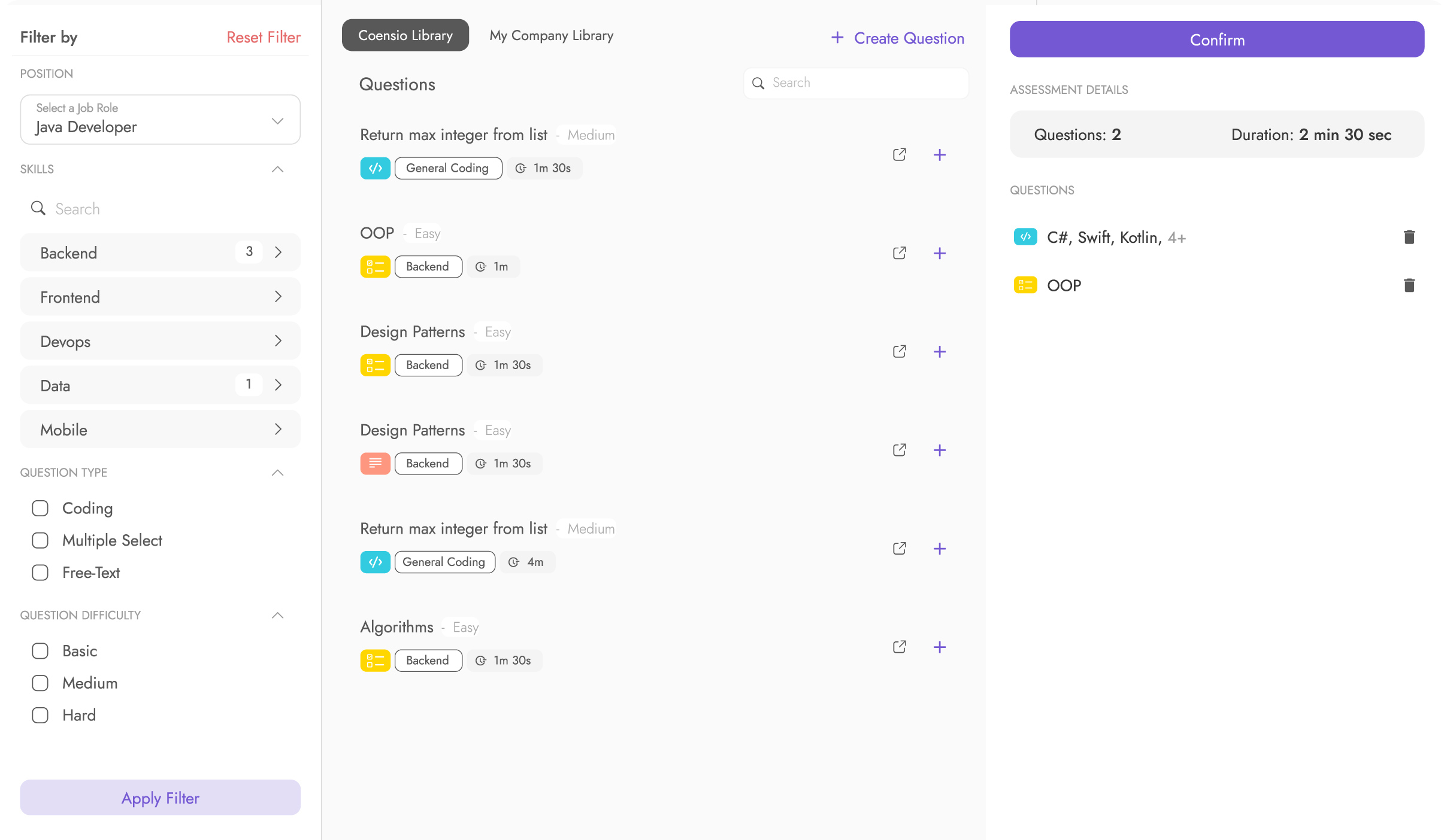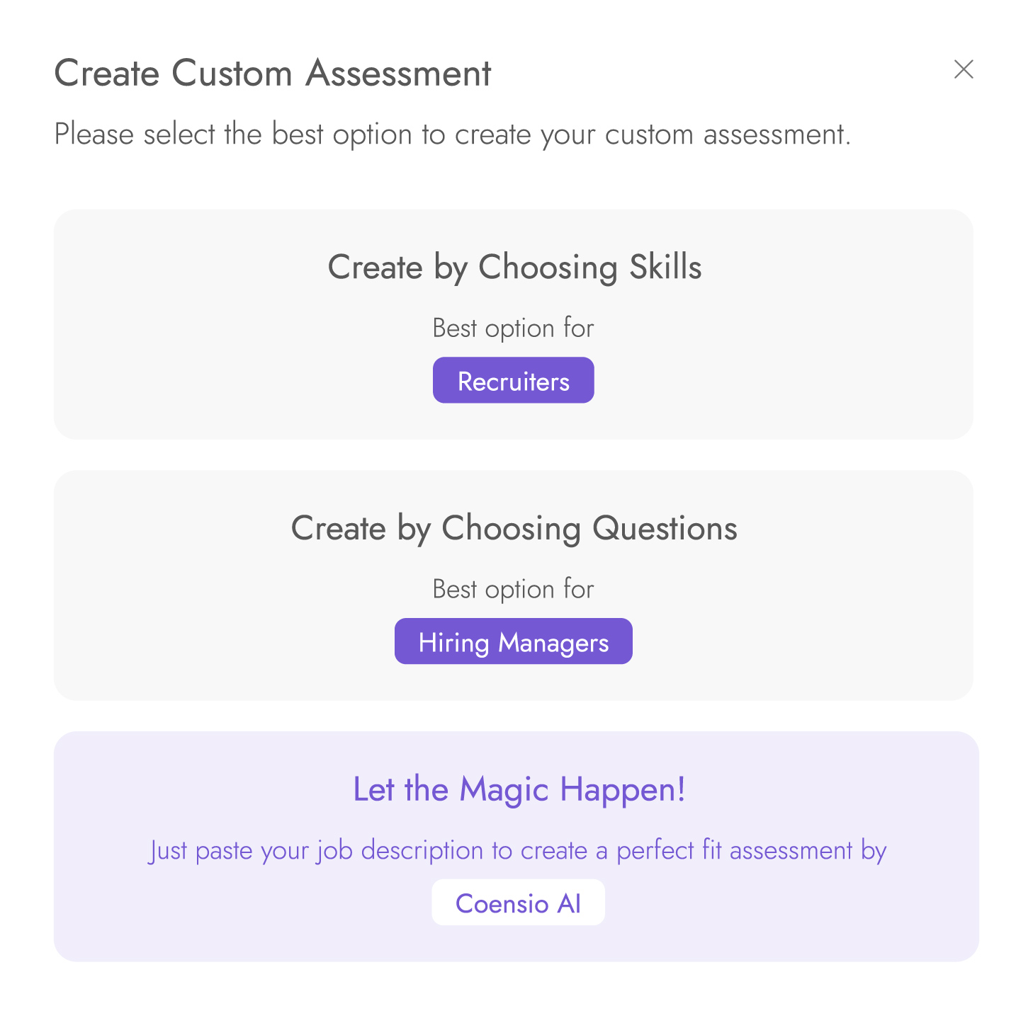 Choose from 200+ assessments from the library of technical or non-technical areas.